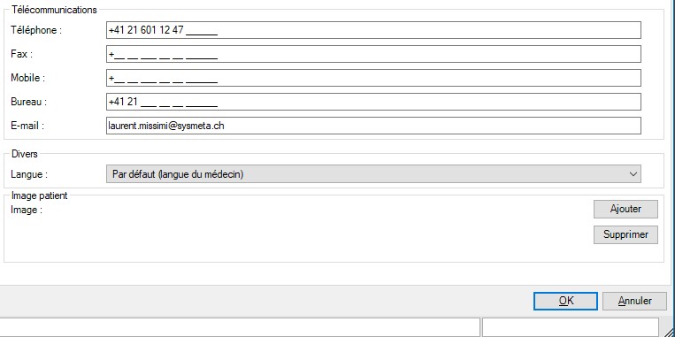 Si un email est présent dans la fiche patient, en cliquant sur le texte e-mail vous ouvrirez votre client email par défaut.