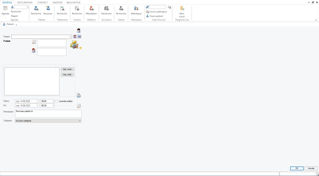 Une fois le patient ajouté via la carte d’assuré ou manuellement, il est intéressant de l’attribuer au rendez-vous afin de le lier au patient.