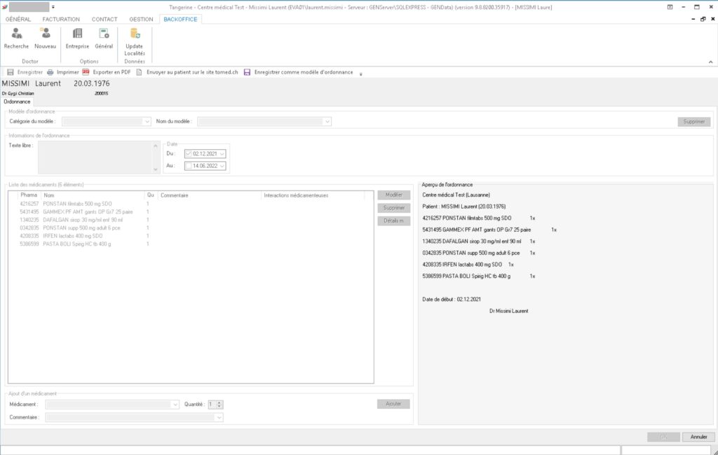 Depuis l’écran de vu des informations patient il est possible de créer des ordonnances.